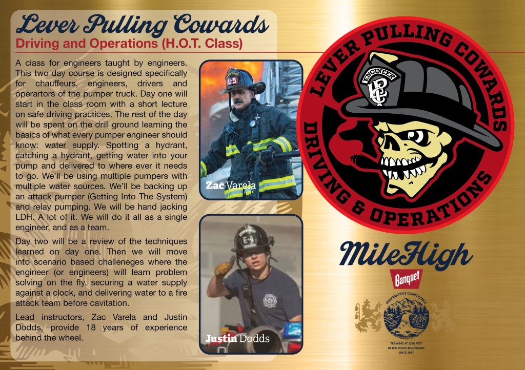 This two-day course is designed specifically for chauffeurs, engineers, drivers and operators of the pumper truck. Day one will start in the class room with a short lecture on safe driving practices. The rest of the day will be spent on the drill ground learning the basics of what every pumper engineer should know: water supply. Spotting a hydrant, catching a hydrant, getting water into your pump and delivered to where ever it needs to go. We’ll be using multiple pumpers with multiple water sources. We’ll be backing up an attack pumper (Getting Into The System) and relay pumping. We will be hand jacking LDH. A lot of it. We will do it all as a single engineer, and as a team before cavitation.